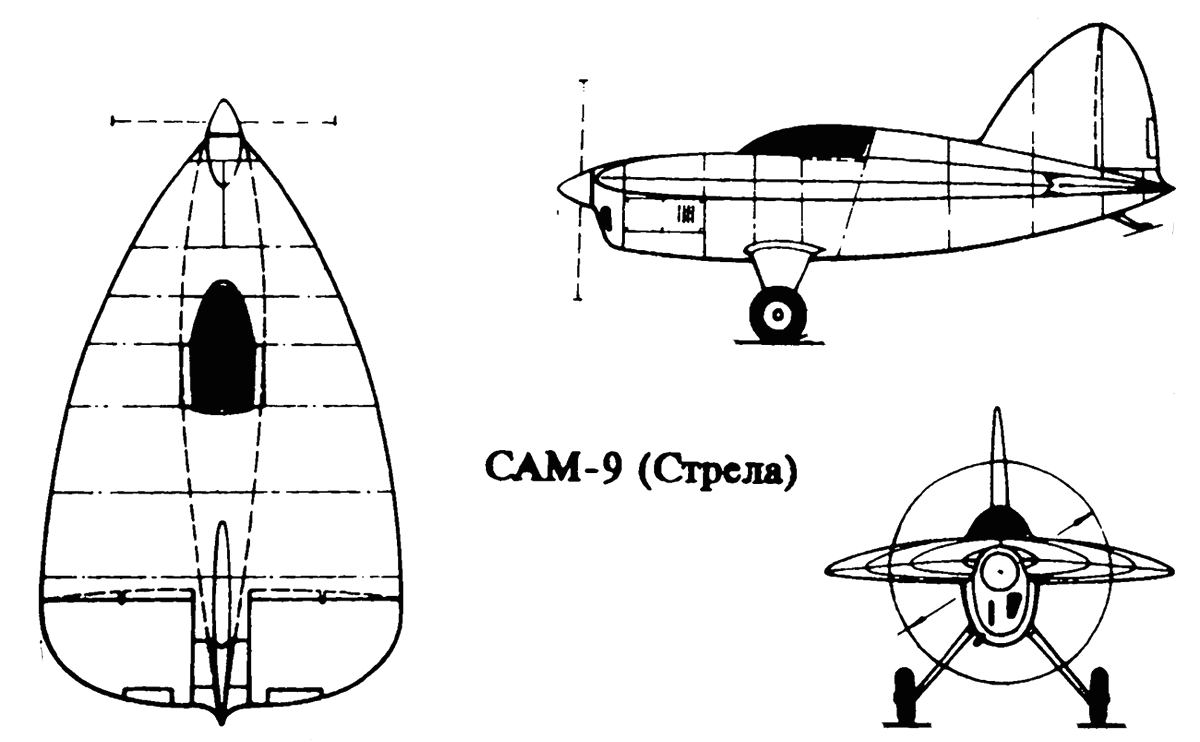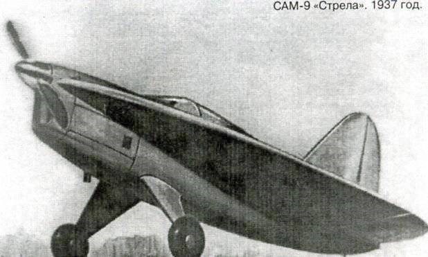 Но проблема "острого" крыла была изучена и более подробно. Для этого Москалёв спроектировал в 1938 году самолёт, похожий на наконечник стрелы САМ-9: