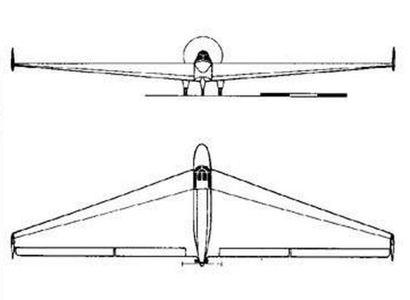 Но и наши тоже не сидели сложа руки. Идеи летающего крыла их тоже не обошли стороной. Исследования велись. Вот такой мотопланер БИЧ-11 был спроектирован в 1932 году Черановским: