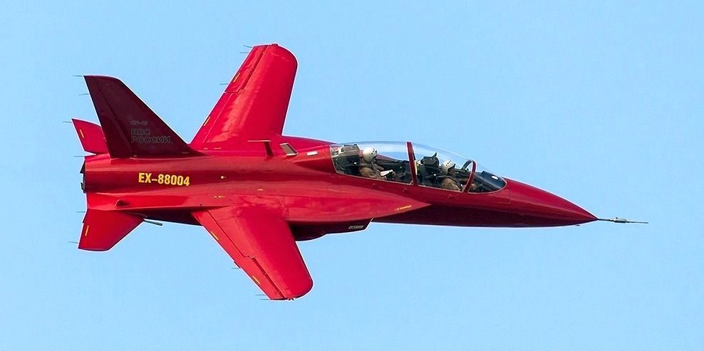 Ну а сейчас... а сейчас пока у нас прошёл все испытания турбореактивный двухместный учебно-тренировочный СР-10 (СР - самолёт реактивный, цифра 10 - отрицательный угол стреловидности на передней кромке крыла) и его собираются сделать первым в мире серийным самолётом с обратной стреловидностью крыла. Нет, ну красавец ведь: