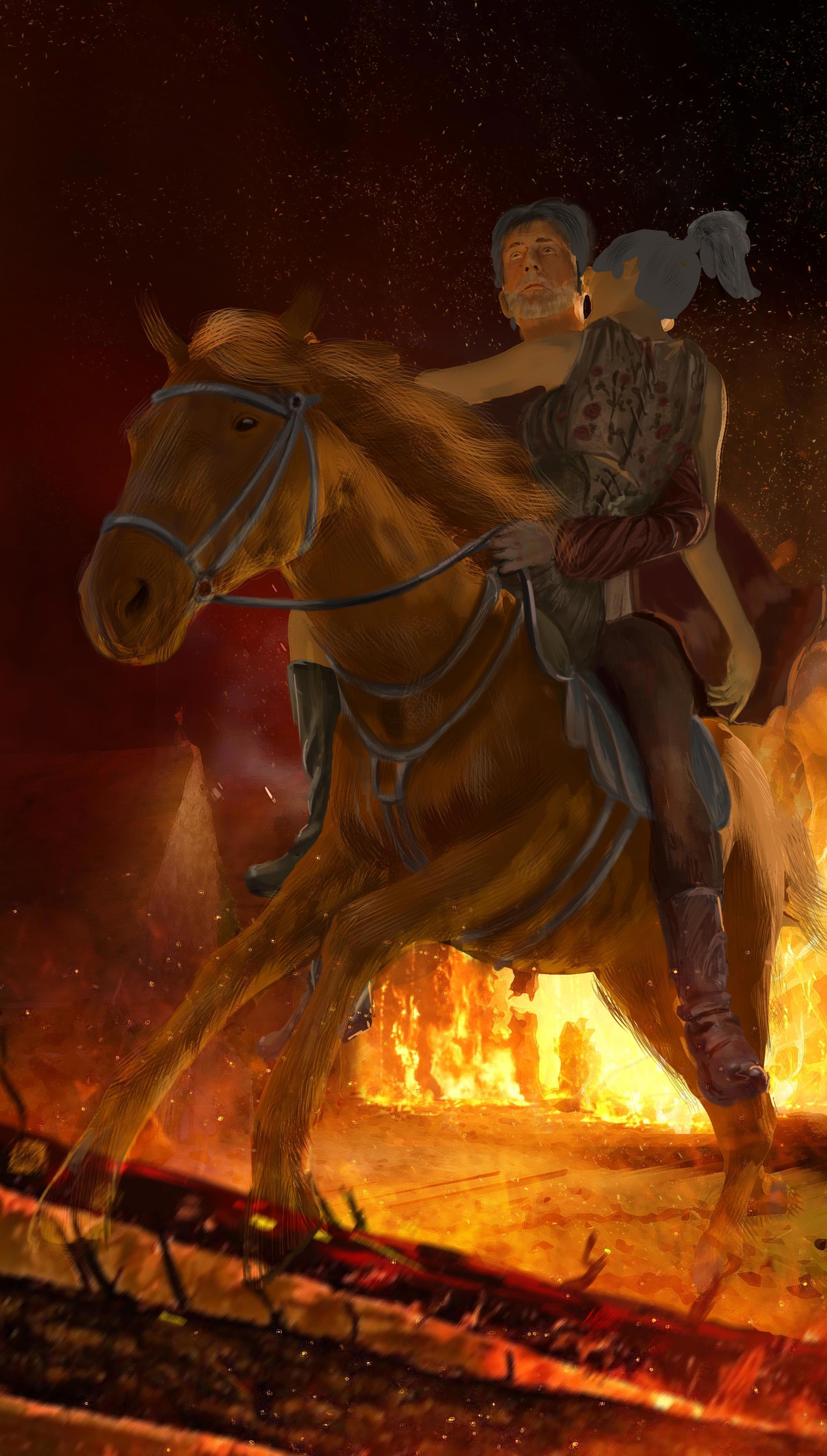 В этой работе были использованы готовые текстуры кожи (человеческой), горящего дерева, огня и камня.