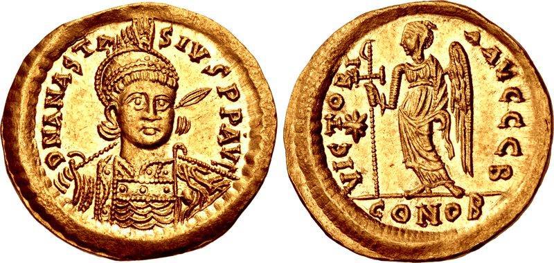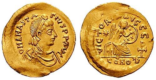 Золотой солид Анастасия Дикора. Отчеканено в период с 507 до 518 год.