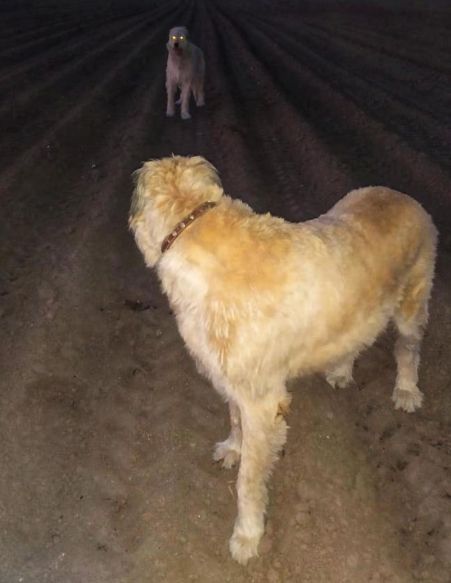 Толстопопый Кейн понемногу осваивается. Моя попытка заставить его бегать с другими собаками пока не увенчалась успехом, он ходит за мной хвостиком и шумно дышит.