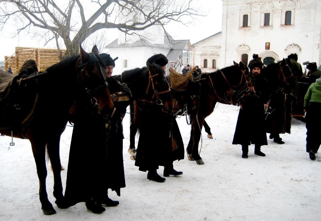 Пластиковые окна, люди в современной одежде на переднем и заднем плане… Это не киноляпы. Снимки сделаны на съемках фильма. 2008-ой год, Суздаль, снимается «Царь» Лунгина с Мамоновым и Охлобыстиным.