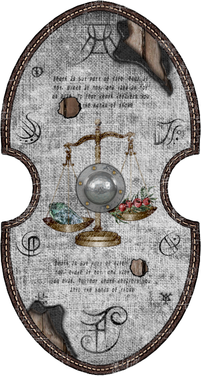На сей раз представляю вашему вниманию щиты и знамена домов Оркней (дом Гавейна) и Ле Фей (дом Морганы). По-моему, атмосферу и характер своих владельцев они передают очень неплохо.