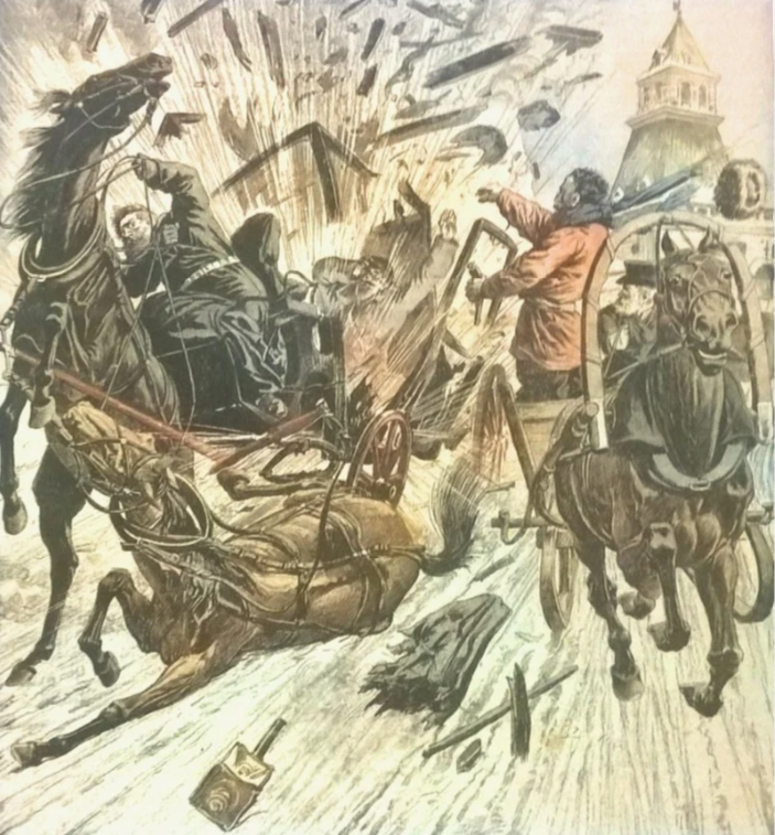 Савинков присел сюда за очередной взрыв итогом которого стала смерть средней руки чиновника из министерства внутренних дел, а также нескольких гражданских оказавшихся рядом. "Дровишки" в огонь революции.