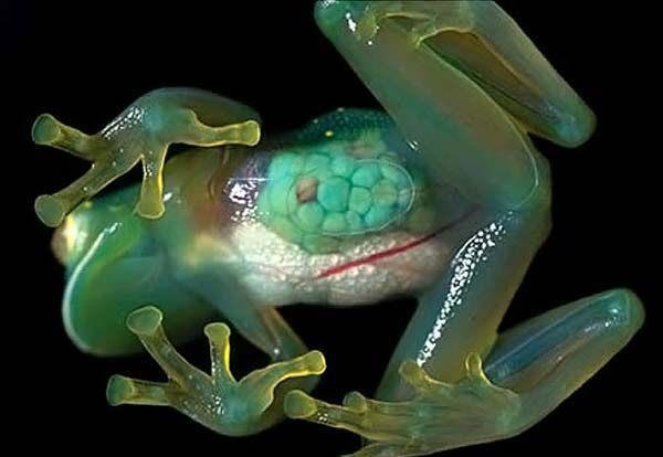 Hyalinobatrachium pellucidum – также называемая стеклянной или прозрачной лягушкой из-за своей прозрачной кожи, сквозь которую можно увидеть ее внутренности. К сожалению, это вымирающий вид амфибий.