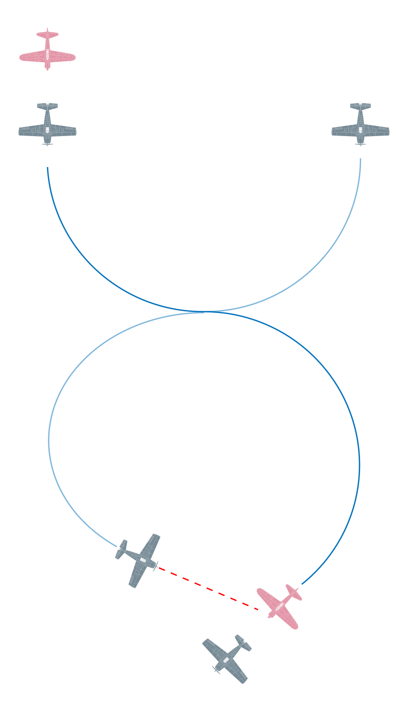 И так. Увеличение скоростей сделало невозможным поражение самолета противника из пушек кроме как "сзади". Ракеты теоретически могли поражать с других ракурсов, но на практике наиболее ходовые с ИК-наведением опять требовали войти в заднюю полусферу, причем достаточно близко для того чтобы цель не успела спрятать двигатели. Да и немногочисленные радиолокационные до примерно 1970х могли применяться кроме как сзади только на полигоне - подготовка к старту занимала слишком много времени и цель успевала войти в клинч.
