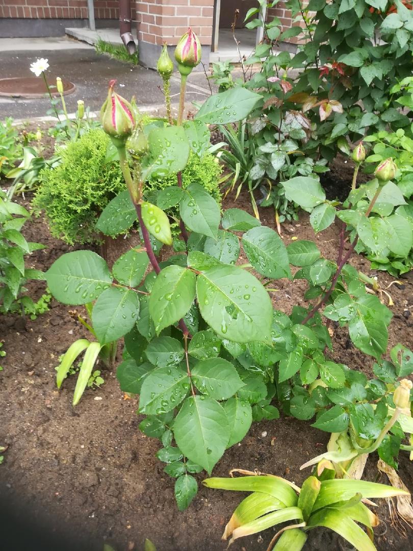 Погодка у нас не праздничная, но я такую как раз люблю, не жарко) Такое небо огромное, красивое. Розы мокрые от дождя, скоро зацветут.
