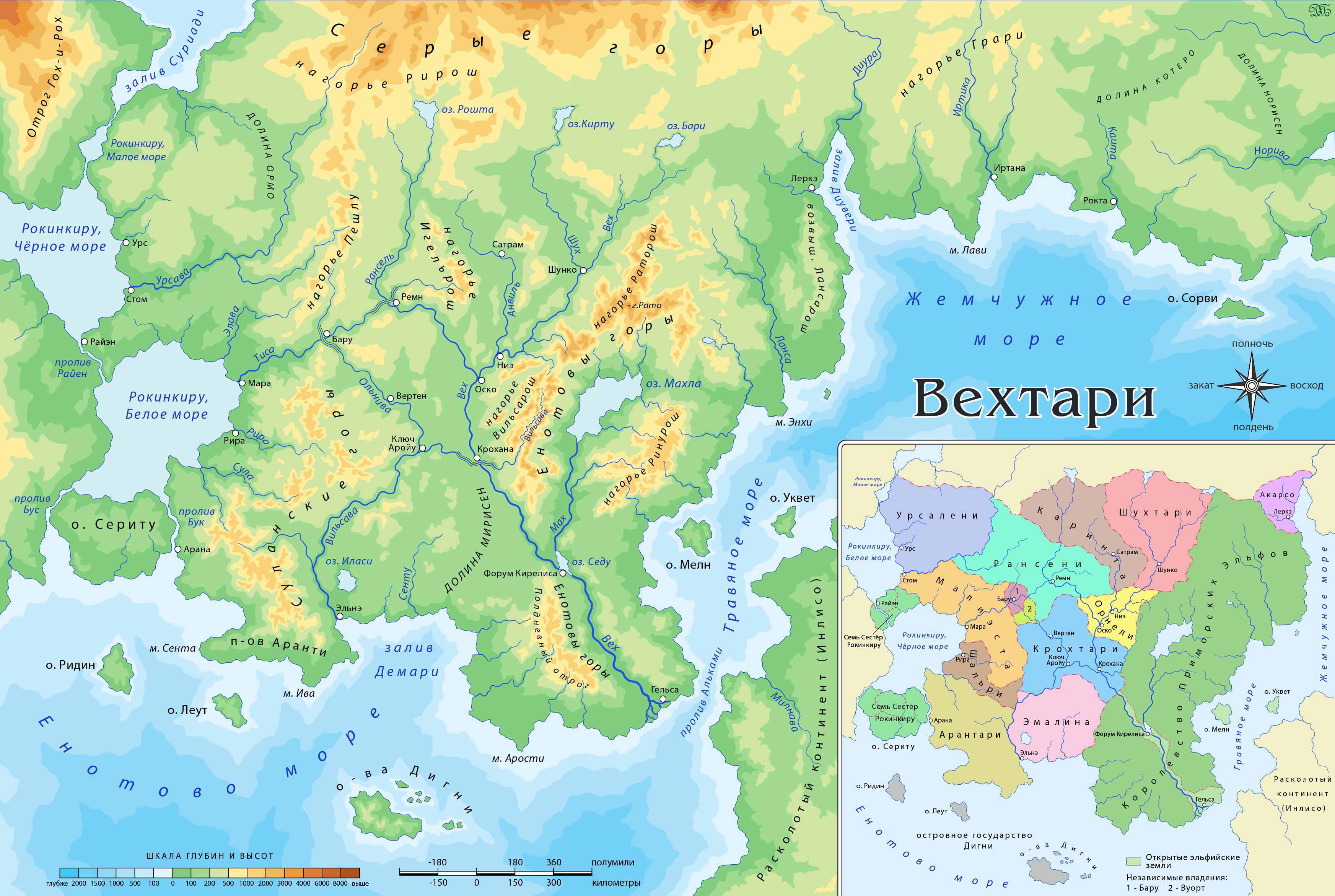 "Взять хотя бы здешние реки. Местные картографы и слышать не хотели о том, что воде, вообще-то, положено течь сверху вниз - во внутренних областях континентов реки образовывали причудливую паутину, спускаясь с гор и поднимаясь в горы, пересекая друг друга под немыслимыми углами, словно автомобильные развязки. Одна из рек, бравшая начало в Енотовых горах, на широте города Оско пересекала Вех возле точки, где было каллиграфически выведено: "Крохана".