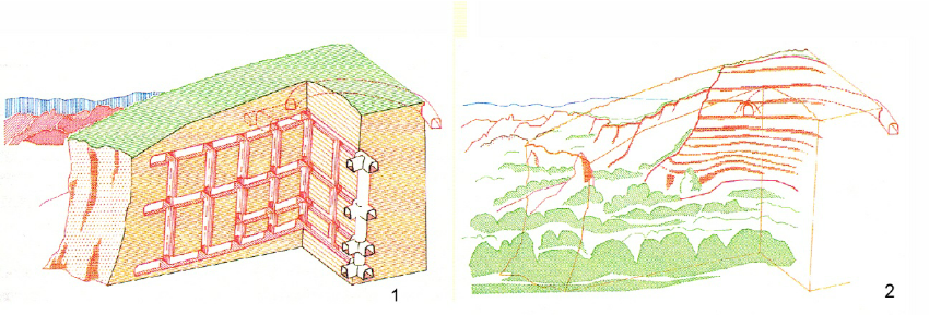Этот метод современные историки называют Ruina montium. Дробить прочные камни при помощи огня и уксуса люди умели и в доримские времена. Для этого рядом с породой, подлежащей раскрытию, разводили костёр, а когда камень нагревался — его поливали холодной водой или уксусом. От перепада температур порода трескалась. В остальных случаях использовались 150-фунтовые железные молоты и железные клинья. Рабов к тому времени в древнеримском государстве хватало, так что вся тяжесть этого труда ложилась на их плечи. Внутри горы создавалась сеть тоннелей. Ходы, пронизывающие гору сверху донизу, не должны были выходить наружу в нижней части.