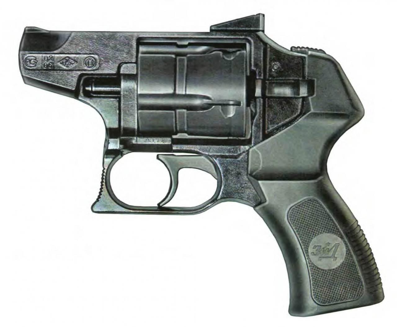 Револьвер снабжен автоматическим предохранителем, который надежно исключает как случайные выстрелы, так и выстрелы при падении револьвера на бетонный пол.
