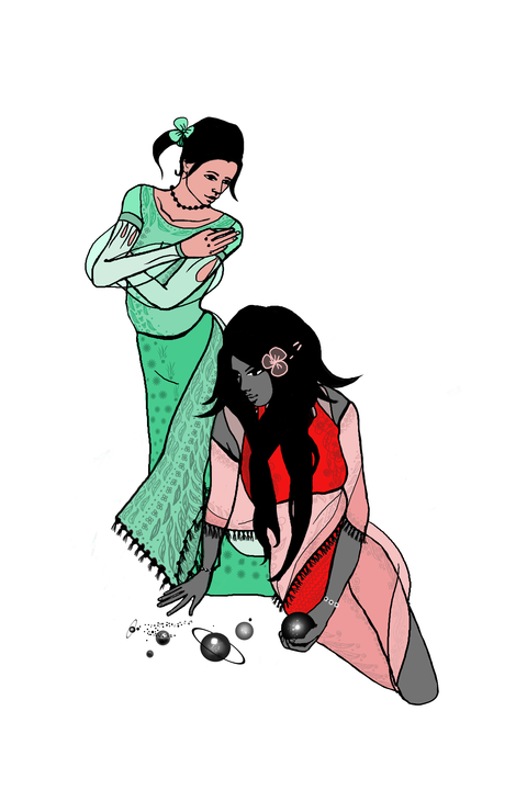 (иллюстрация ниже - к "Книге Снов" - авторства Оксаны Тучиной; изображены Вейс (светлокожая) и Лас, главные героини)