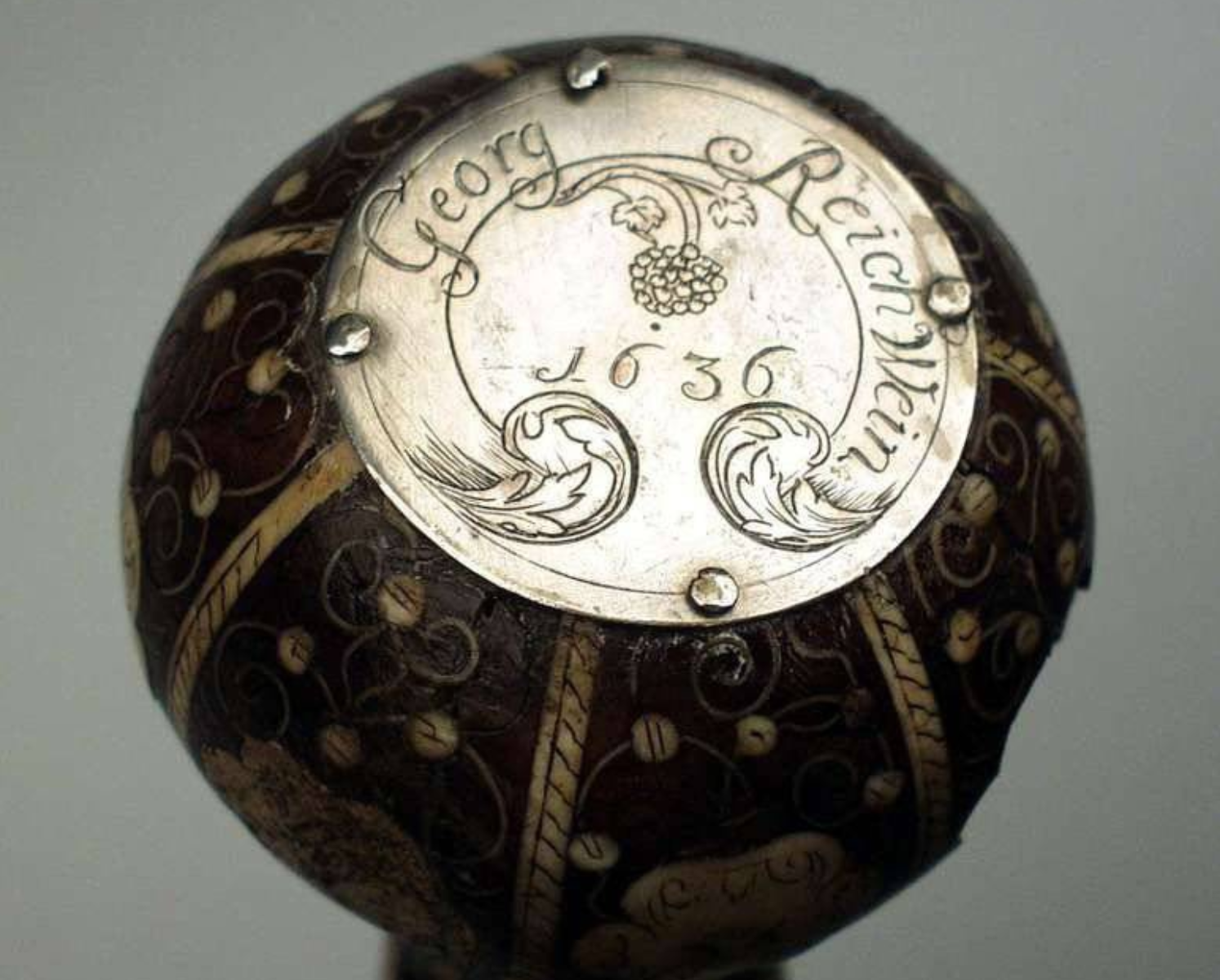 В нижней части рукоятки, на «яблоке» установлена круглая серебренная пластина с изображением виноградной кисти, ветвей лозы и буквенного текста «Georg Reichwein 1636». В 1667 году Райшвайн умер в чине генерала и следы револьвера на несколько десятилетий теряются. В 1834 году кремневый револьвер был привезен купцом Тэлисом Шау (Thales Schou) в Осло, где продан в коллекцию университета. В 1919 году оружие в результате обмена между коллекциями попало в музей города Лиллехаммера.