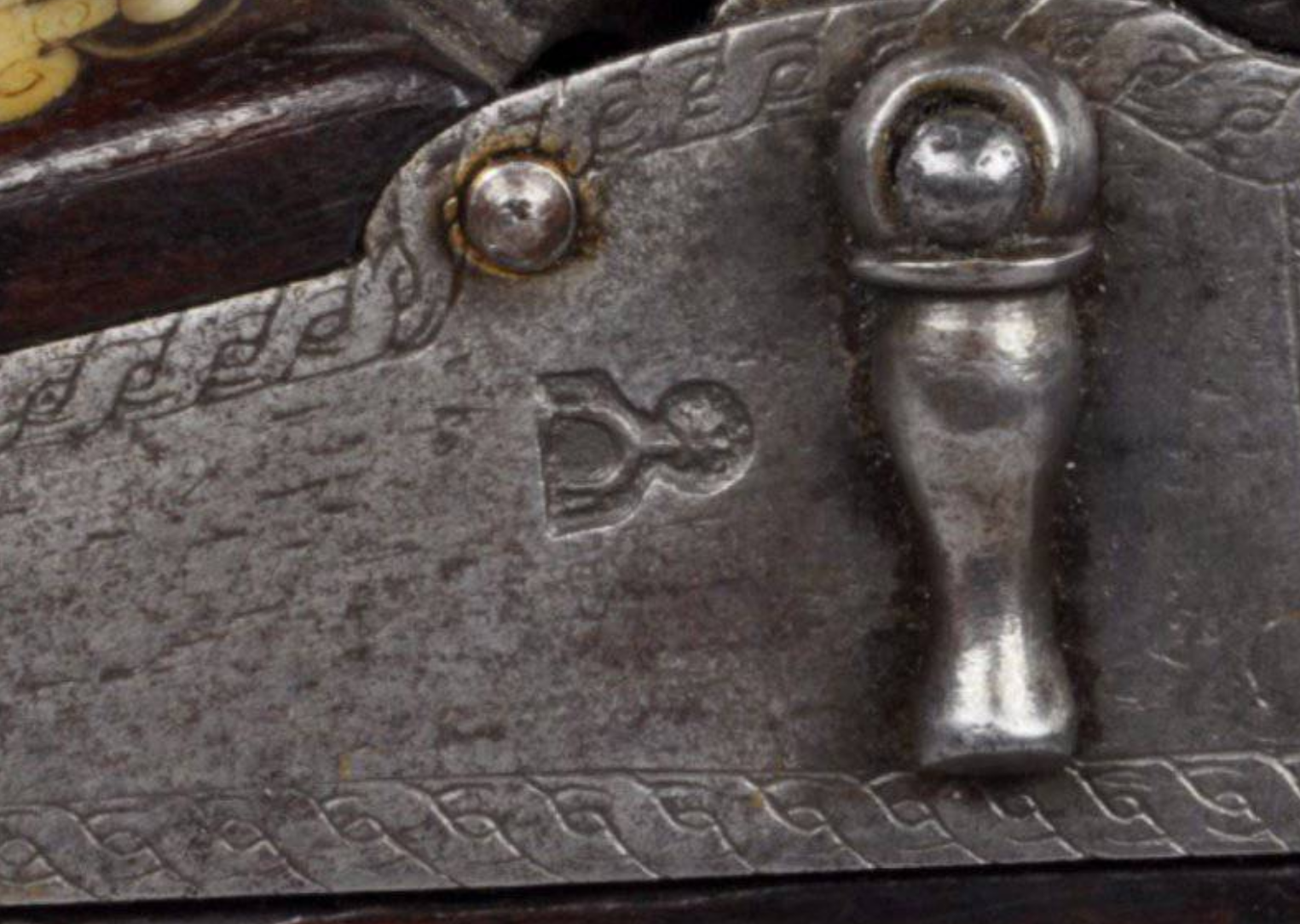 С правой стороны револьвера на замочной доске нанесено клеймо в виде шпоры, которое позволяет определить год выпуска револьвера — 1597. Клеймо принадлежит немецкому кузнецу и оружейному мастеру из Нюрнберга Гансу Стоплеру (Hans Stopler).