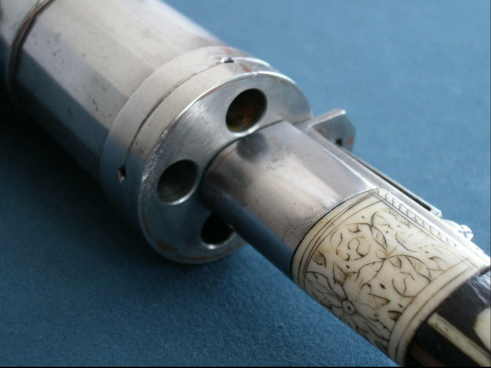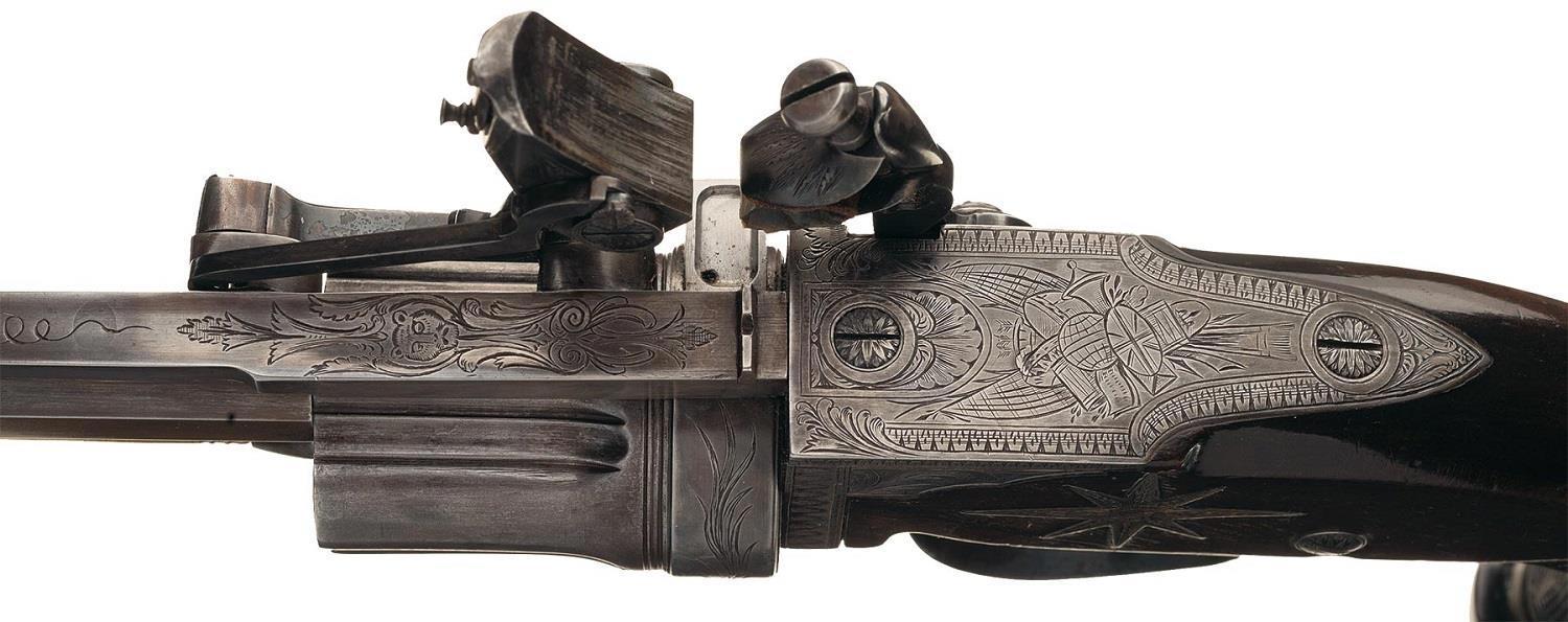 Вот револьвер который вероятно использовал Кольт как прототип. И, весьма вероятно, что он не был автором идеи, а просто воплотил ее на новом технологическом уровне.