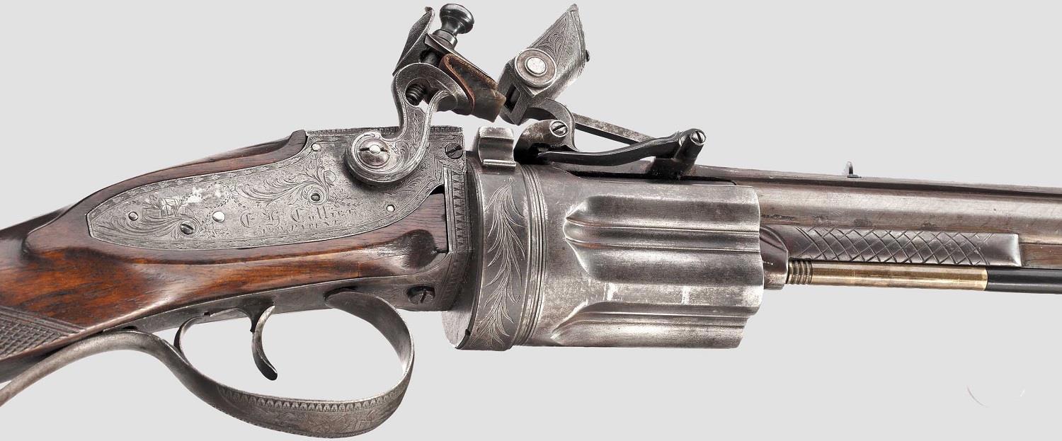 Задолго до появления револьверов Кольта, еще в конце 16 века в Европе оружейники начали изготавливать первые револьверы. Конструктивно они были достаточно примитивными, с кремневыми замками ранней конструкции, не имели механизма вращения барабана. Однако использование барабана позволяло создавать многозарядное оружие, что существенно повышало его огневую мощь. Кремневые револьверы были очень дорогими и их владельцами становились лишь состоятельные люди и видные военачальники.