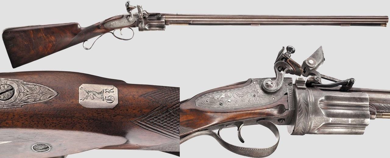 Наряду с револьверами, выпускалось и длинноствольное барабанное оружие системы Коллиера. Однако в отличии от револьверов лишь 150 винтовок и ружей этого типа были изготовлены в 20-х годах девятнадцатого века.