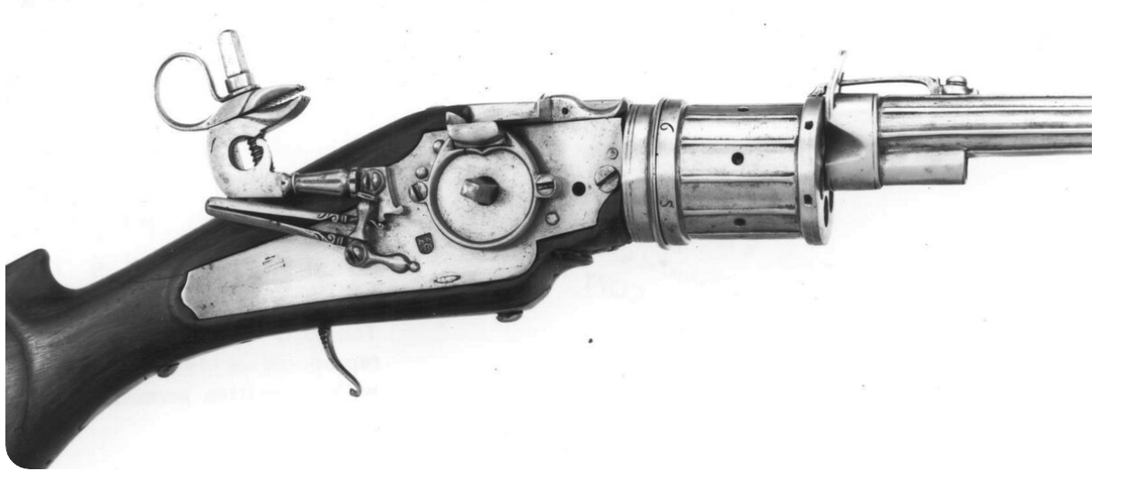 И барабан с каморами, размещенными параллельно оси его вращения, был придуман весьма и весьма рано: как считается, в конце XVI века.