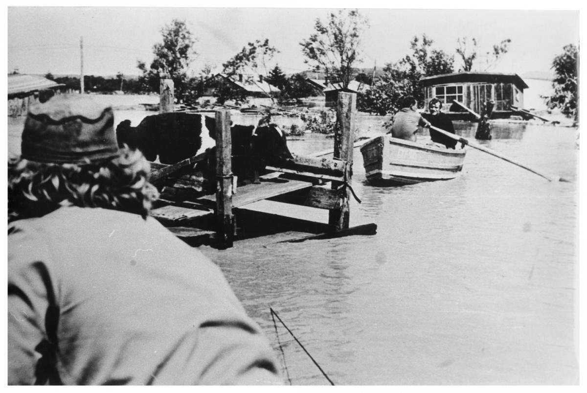 Татьяна Кочетова: Через пару дней, когда уровень воды немного понизился, мы решились сходить домой, во Владимировку. Когда пришли во двор, увидели плавающего на двери от сарая поросенка. Все его родичи утонули, а он выжил! Двое суток плавал! Мы его отмыли, накормили, а когда вырос, даже резать не стали. Так и умер своей смертью наш счастливчик.