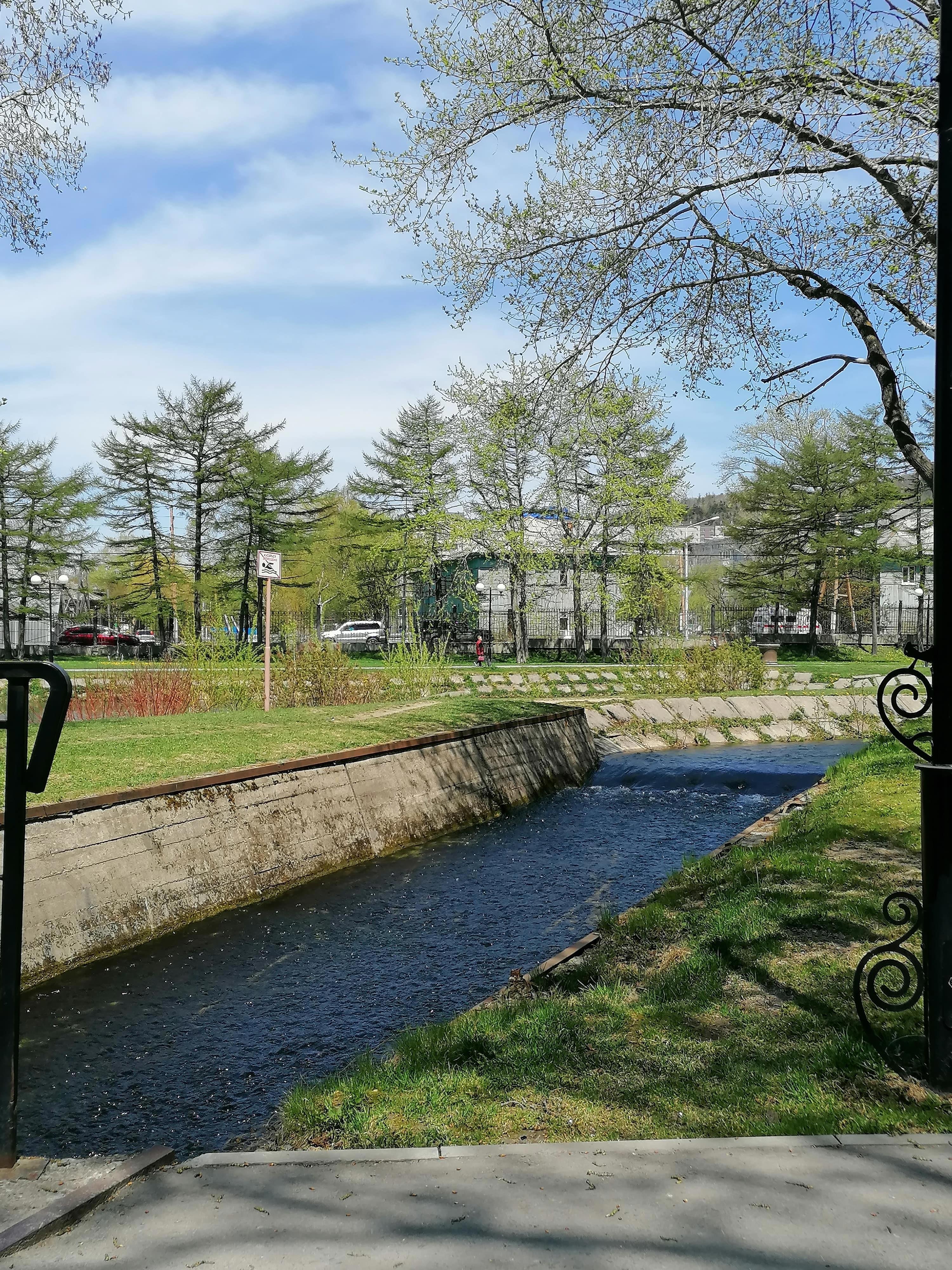 Этакое локальное наводнение. Оно началось в пять утра, а мы были в парке в тот же день около обеда. Кое-где было подтоплено и грязно, полотно железной дороги размыто, а в городе вода утекла в низину, попутно растекаясь по лужам и канализационным люкам. К чести работников парка они отлично справились с наводнением в считанные дни, и к празднованию 9 мая подготовили парк для встречи с ветеранами.