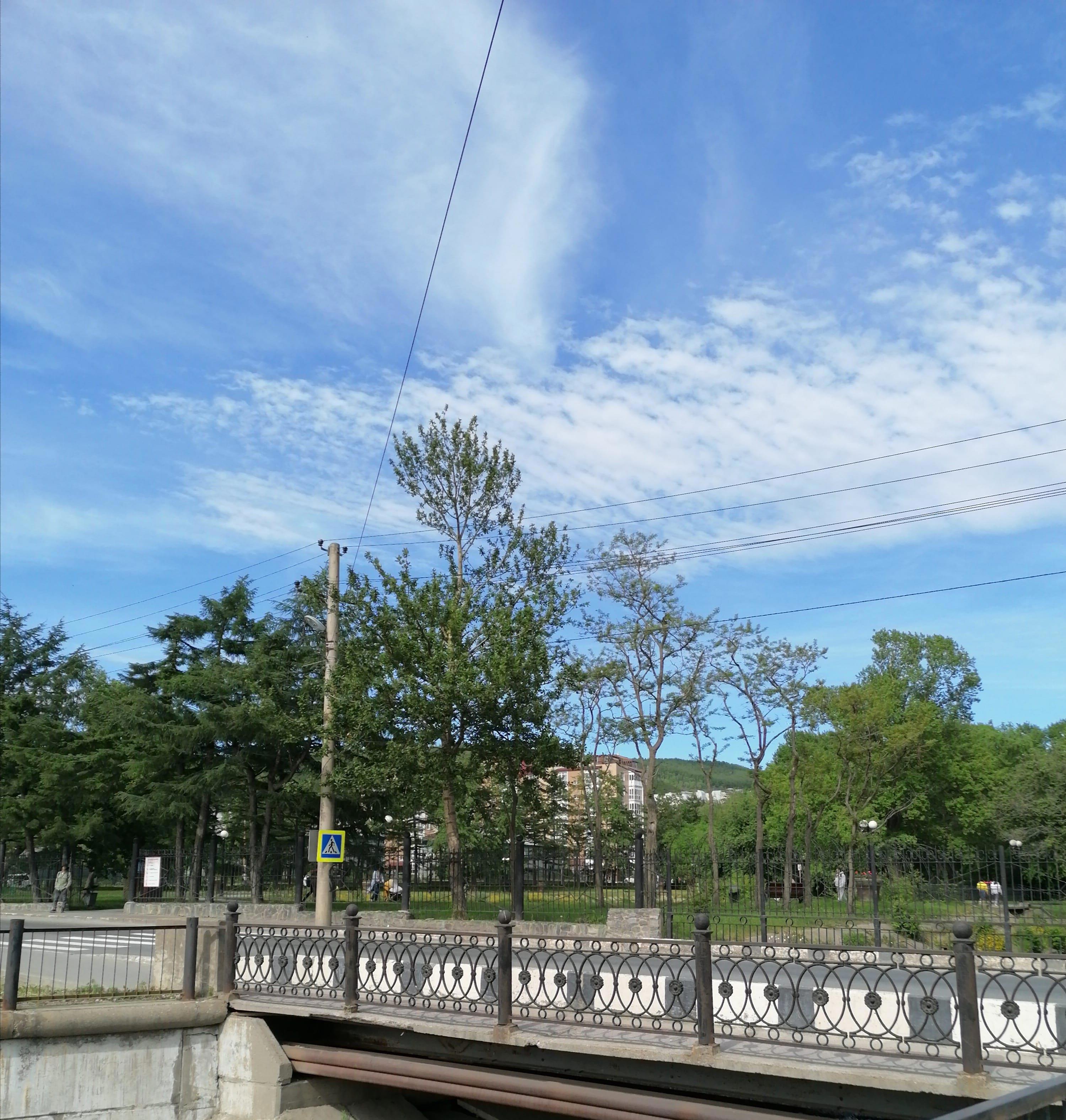 А следующее фото сделано сразу после тайфуна. За забором парк, был до стихии... Улица, перед которой в самом начале стояла Вера, главная героиня рассказа, как раз та, с которой снимает фотограф, только Вера находилась на несколько кварталов ниже, у реально существующего кинотеатра, с реально существующим кафе-мороженым:)