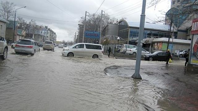 Заметьте вышку на заднем плане, улица идёт под уклон и всё равно воды очень много.