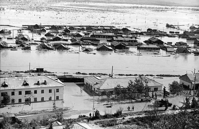 Первоклассником был тогда, в пионерлагере "Буревестник". Привезли нас, расселили, а гулять-развлекать не спешили. Дожди, и мы сидели в корпусах. Ручеек там был неподалеку, мы втихаря бегали смотреть как он в течение часа-другого превращался в бурлящую реку. И в тот же день нас спешно собрали и повезли на автобусах в Южно-Сахалинск. Ехали по воде, дороги было не видно. Часто останавливались, из ехавшей впереди нашей колонны машины выходили военные и милиционеры в болотниках и плащпалатках с шестами, измеряли глубину под водой, чтобы определить куда ехать дальше, не затонув.
