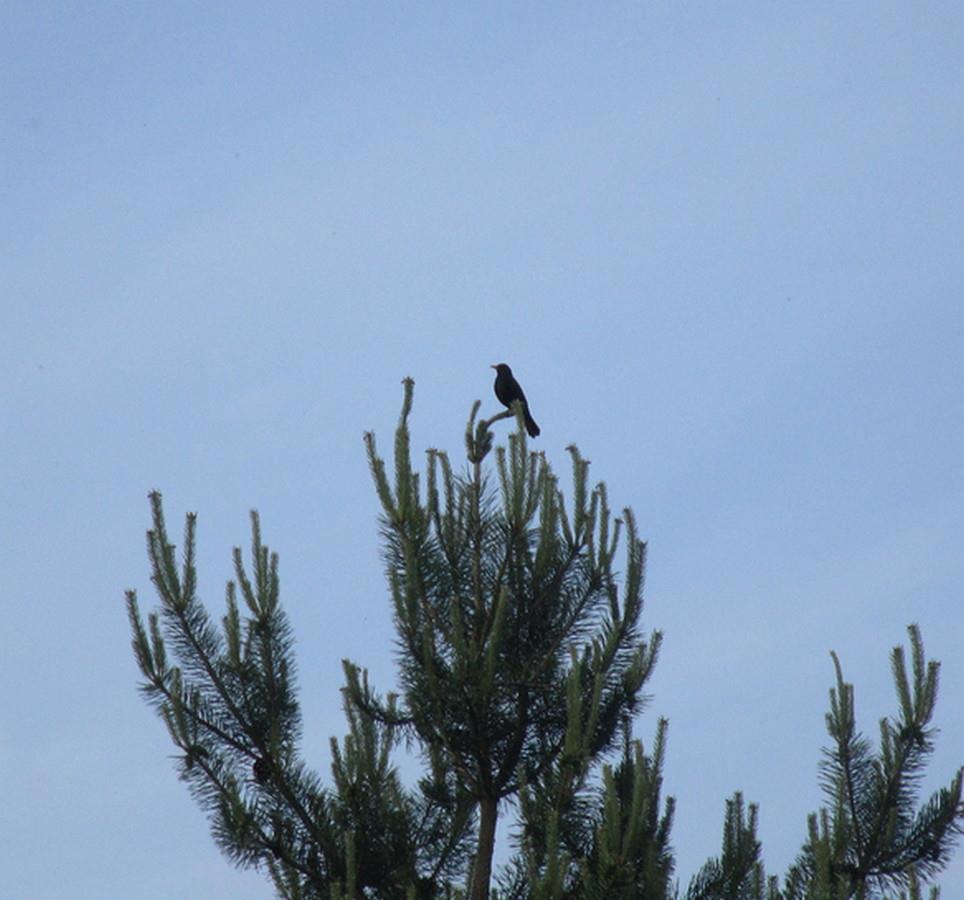 Этот певун всегда занимает самую высокую точку - или на верхушке елки, или наверху сухого орешника: