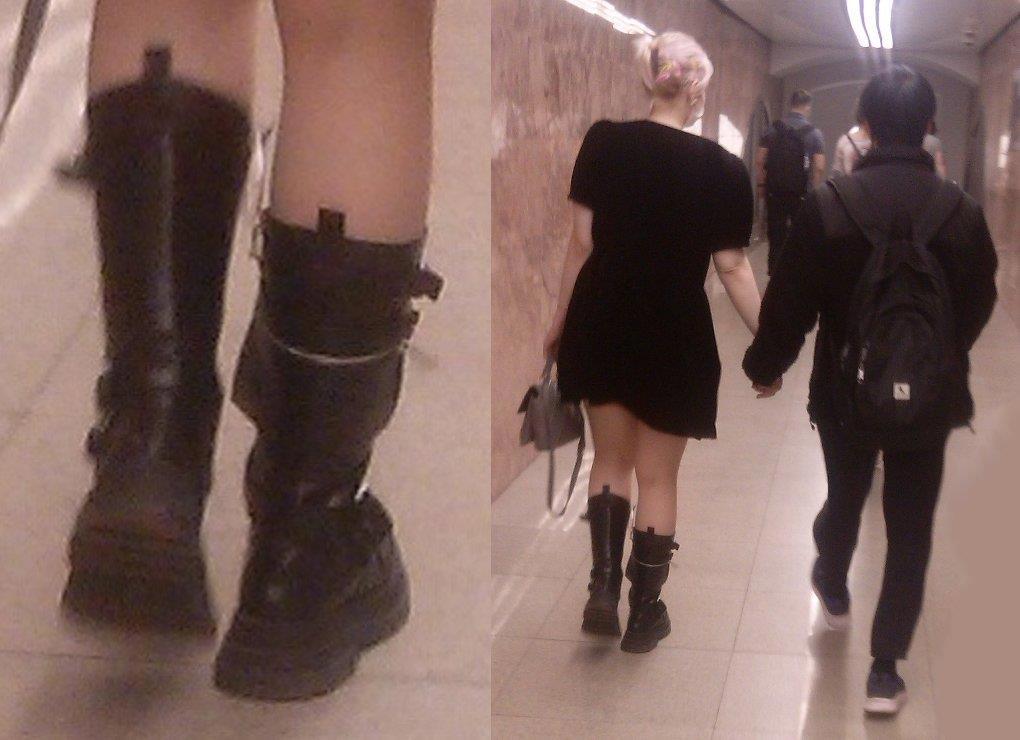 платье, девушка (кстати симпатичная) и... давногавы. Ну ведь не гармонирует же! Или мои устаревшие взгляды уже давно не в тренде?
