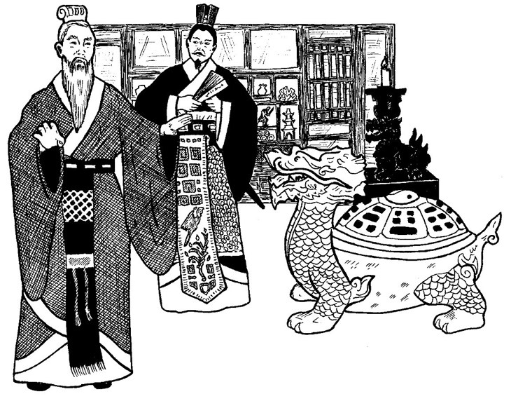 Центральная идея конфуцианской бюрократической монархии - в том, что страна - одна семья, подданные слушаются императора как дети, тот заботится о них как отец, но не только это. Император - "Сын Неба", транслирующий на страну небесную благодать. Страна большая, дел много (в реальном Китае главным делом были оросительные и дренажные работы), необходимо чётко координировать работы, а значит, нужны чиновники. Чиновников назначает император (и другие чиновники), через них благодать тоже должна транслироваться, так что для них (как и для императора) очень важно наличие твёрдого морального компаса: конечно, бескорыстие, но ещё и знание и уважение этикета.