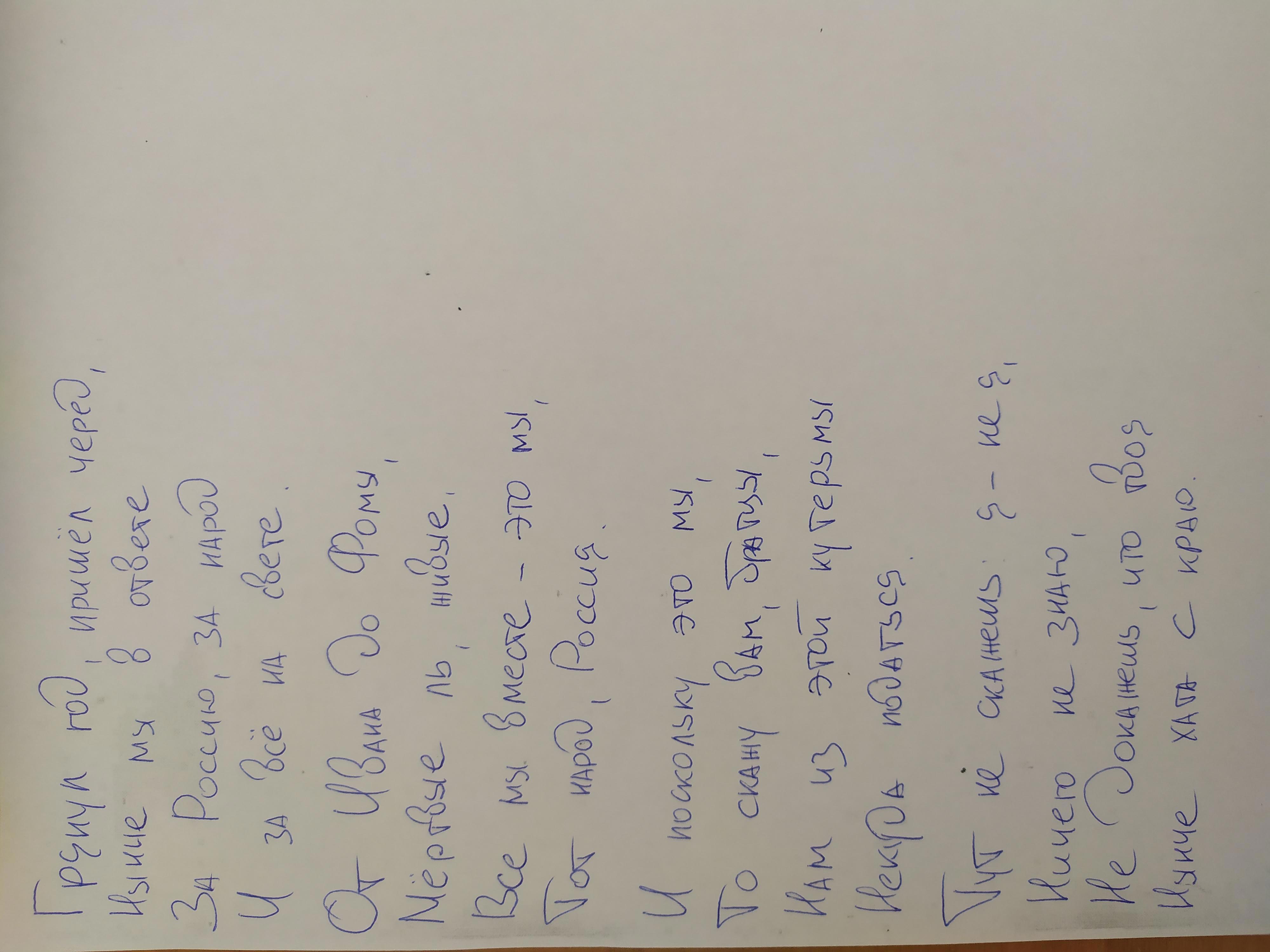Автор: Азамат КозаевПеречитывая "Трëх мушкетёров", тот эпизод, где Атос вынужден фехтовать левой, отчего-то подумал: " А как я смог бы фехтовать пером по бумаге левой?" Аж интересно стало. Взял два листа бумаги и вот... Правда, в моëм случае почерк из-под правой и почерк из-под левой оказались похожи, что говорит лишь о том, что правой я пишу не шибко красиво. Что называется, пойми, где правая, где левая...
