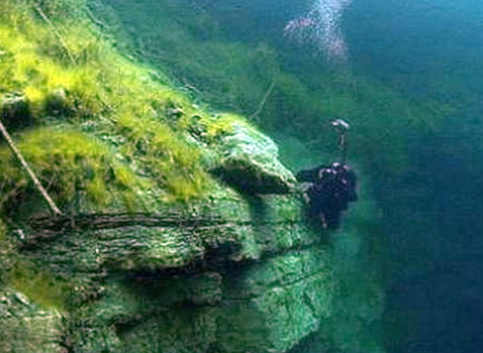 Кладоискатели между тем рассказали о своих усилиях по расчистке объекта от донных отложений… я сразу вспомнил, что глубина более 80 метров. Суровые ребята. Далее начинается то, что можно оправдать одним единственным принципом, позаимствованным у специалистов по рекламе: «Драматизируй свою идею». Исследователи, например, заявили, что вблизи объекта враз перестаёт работать вся электроника. Некоторые даже утверждают, что даже фонарики не светят. Хотя на расстоянии в 200 метров всё работает отлично. Видимо, чтобы это подтвердить эту аномалию, они публикуют вот такие фотки, снятые на электронные камеры, обследования объекта аквалангистами: