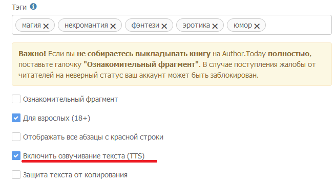 Автор: Вечерний СумракВ настройке книги увидел интересную галочку. Включить озвучивание текста.