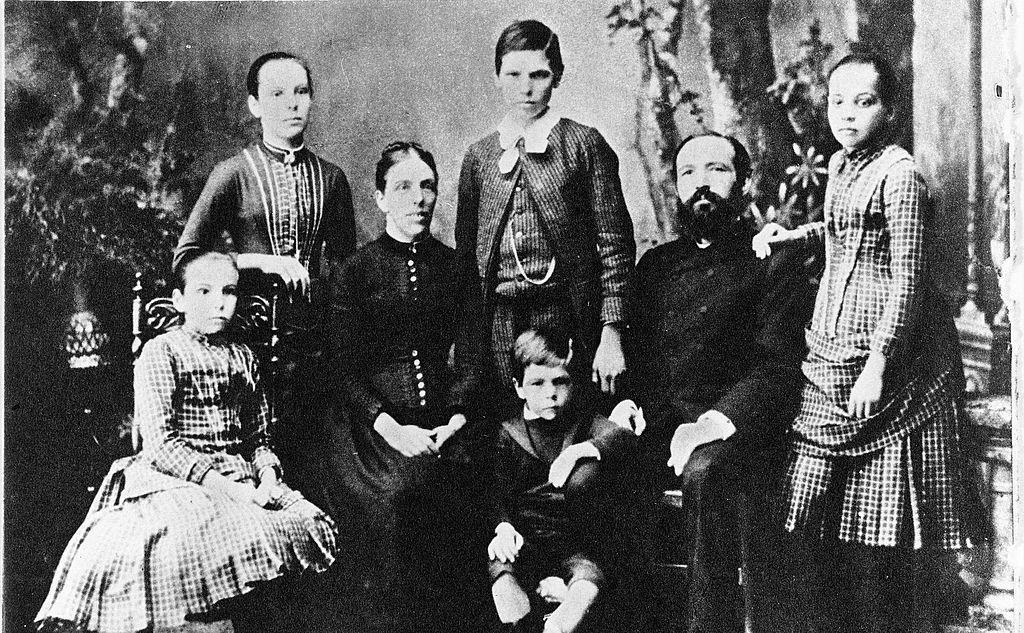 Семья Швейцеров. Десятилетний Альберт Швейцер стоит в центре фотографии. 1885 год.