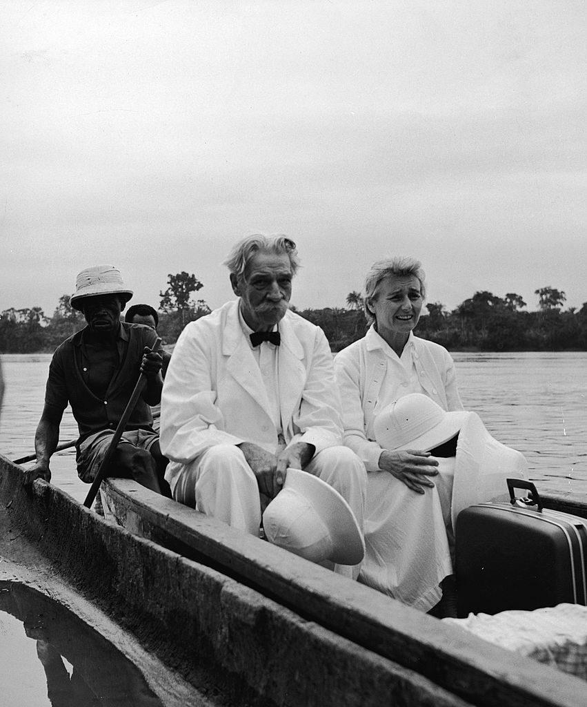 Альберт Швейцер с женой Хеленой плывут на лодке по реке Огове. Габон. 1940-е годы.