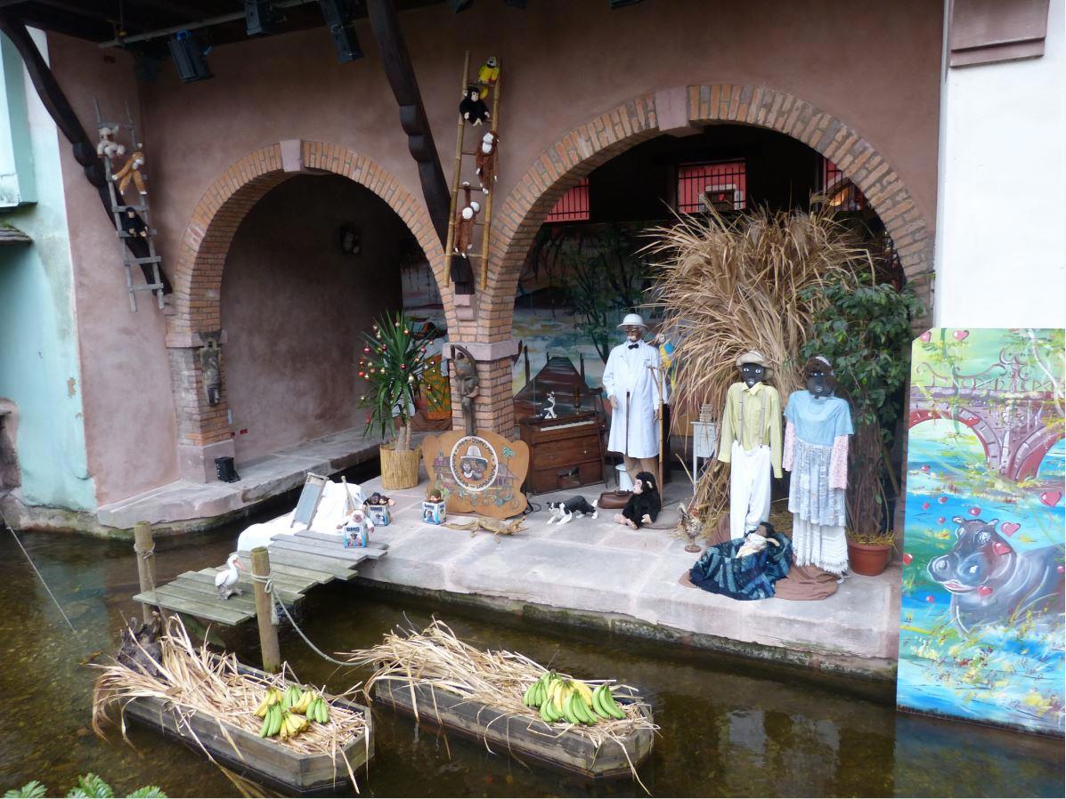 В аркадах одного из домов, выходящего в Вайсс, была устроена интересная многофигурная композиция. Моей первой мыслью было, что это всё изображает подвиги доктора Айболита в Африке. Но разве в Эльзасе знают про доктора Айболита?