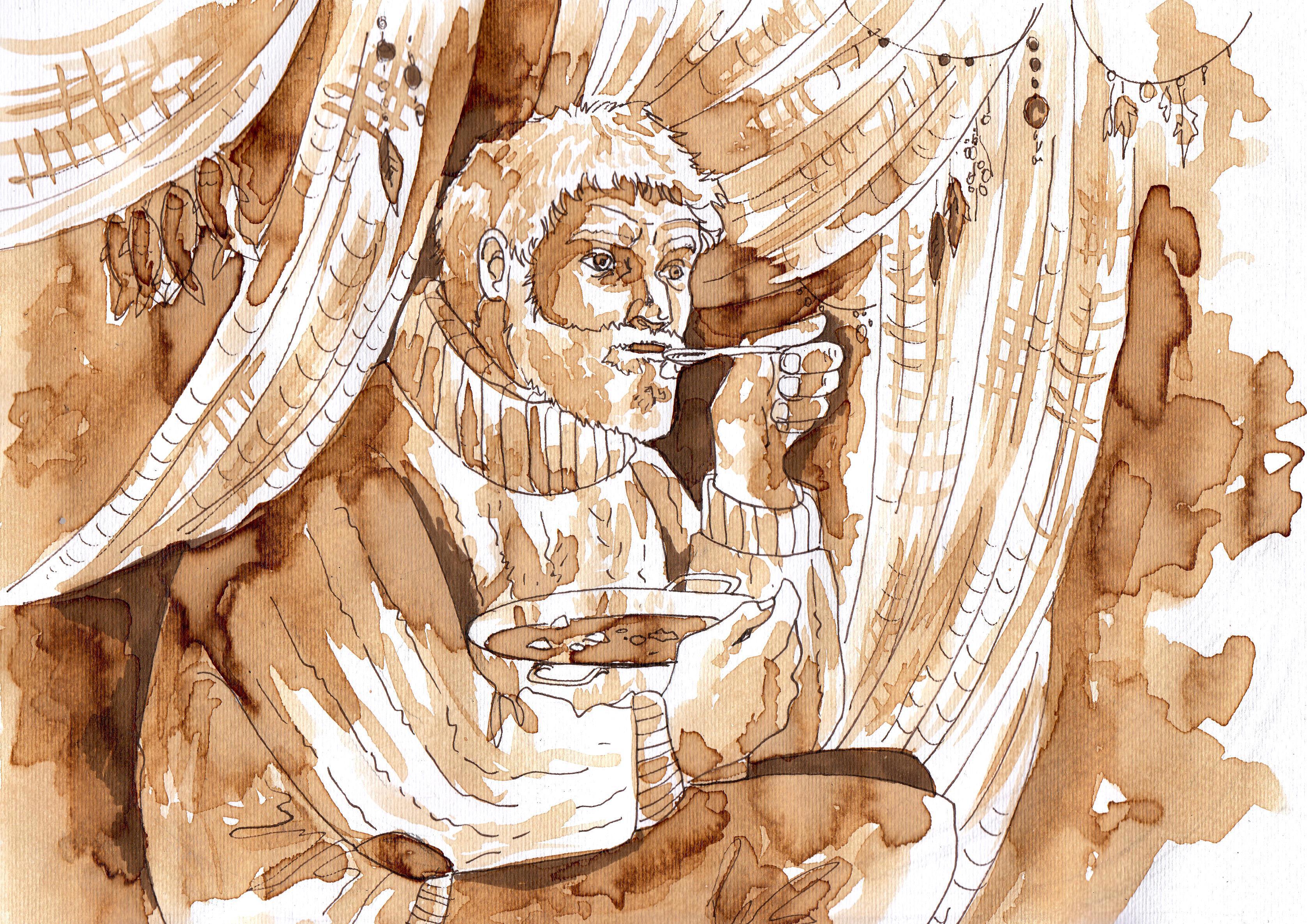"Школу" я читала несколько лет назад, ну и в процессе потихонечку порисовывала кофейные иллюстрации к этому прекрасному роману, полному искрометного юмора и волшебства. Автор книги - лингвист и преподаватель, которая очень любит играть со словами и смыслами. Поэтому книга наполнена не только эпизодами из студенческих будней волшебной валлийской Школы (да-да, отсылочки к Хорвартсу!), но и множеством отсылок к мифологии, истории, литературе.