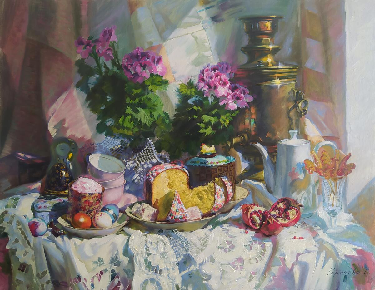 В связи с этим байка. На праздник студентки притаранили супругу гостинец - куличики собственного изготовления и крашеные яйца. Мне как раз в натюрморт пригодились. На днях повесила картинку в контакте, а поскольку много общих знакомых - видят и лайкают и те и другие. Муж говорит - дети сразу узнали, кто чего преподнёс, и ходят счастливые.