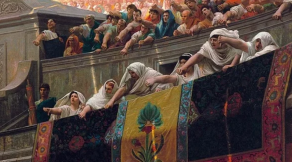 Любимица Колизея и взыскательной публики, лежала на белом песке окрапляя его кровью. Наверняка она ждала задранного вверх большого пальца - знака означавшего жизнь для поверженного гладиатора, но... не дождалась. Мёртвое тело недавней "звезды" зацепили железным крюком и утащили в тень полуподземных переходов, где бросили на кучу трупов накопившихся за день, среди них были и бывшие противники амазонки.
