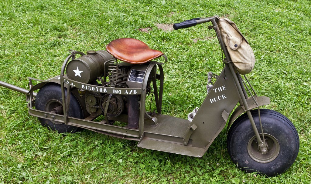 Нельзя не упомянуть ещё об одном типе мототехники, которую сейчас почему-то считают чем-то вроде курьёза, но дело было серьёзное. Речь о микромотоциклах. Их разрабатывали для десантных подразделений. Вот, например, американский вариант решения проблемы быстрого перемещения для десантников Cushman:
