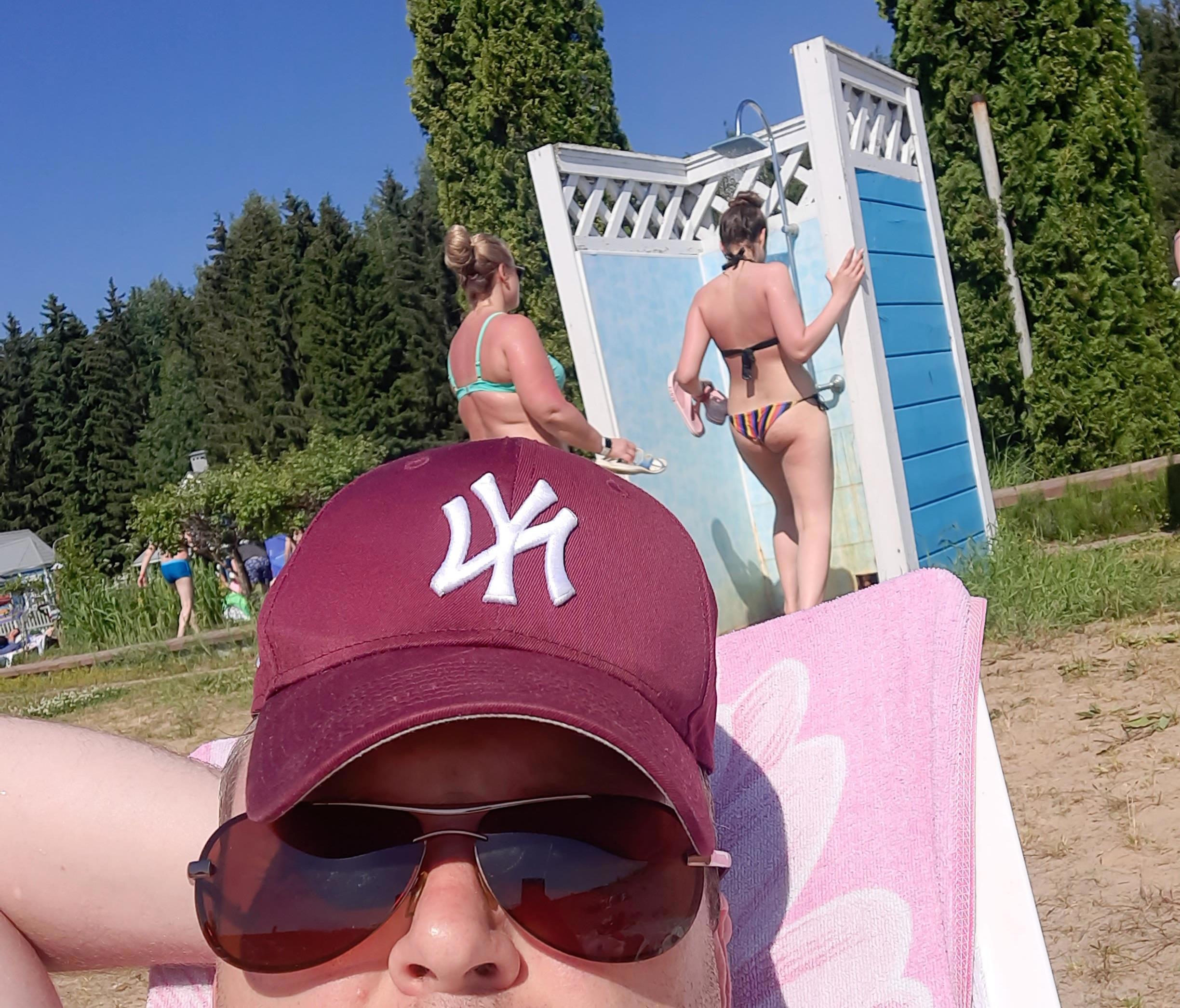Озеро теплое, правда, количество купающихся подняло со дна кучу песка, поэтому вода была немного мутновата. Но все равно, для купания классного меня, самое оно. Ну и как украшением новогоднего стола служит салат Оливье, так и украшением пляжа являются девушки в бикини.
