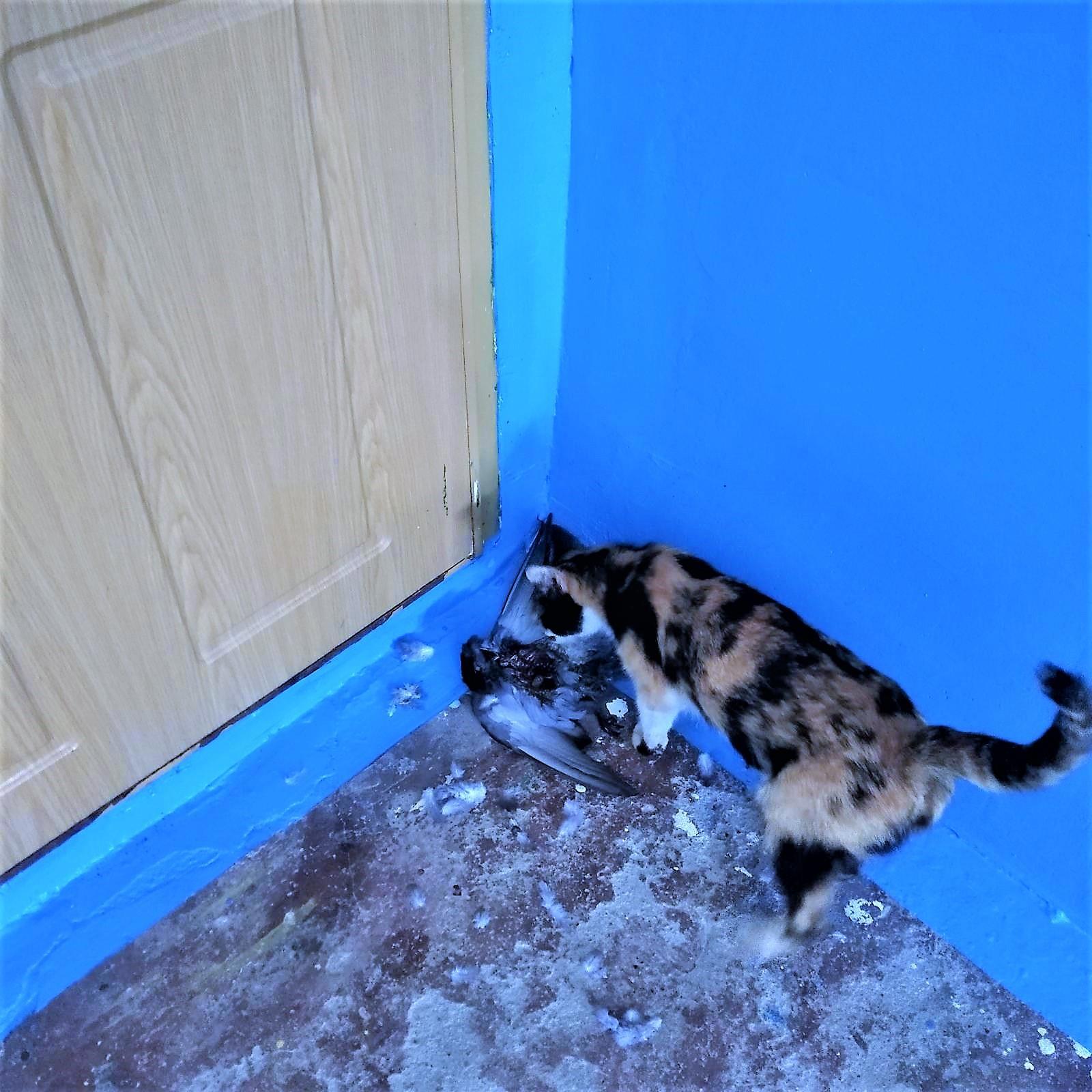 Вынесла голубя на мусорку, вернулась и вымыла с хлоркой подъезд, ведь там кроме меня живут живые люди, которые могут быть недовольны моим зверинцем. Я ещё домывала, когда кошка извлекла голубиный трупик из помойки и принесла назад. Я покрыла её матом и, угрожая шваброй, быстро проводила из подъезда.