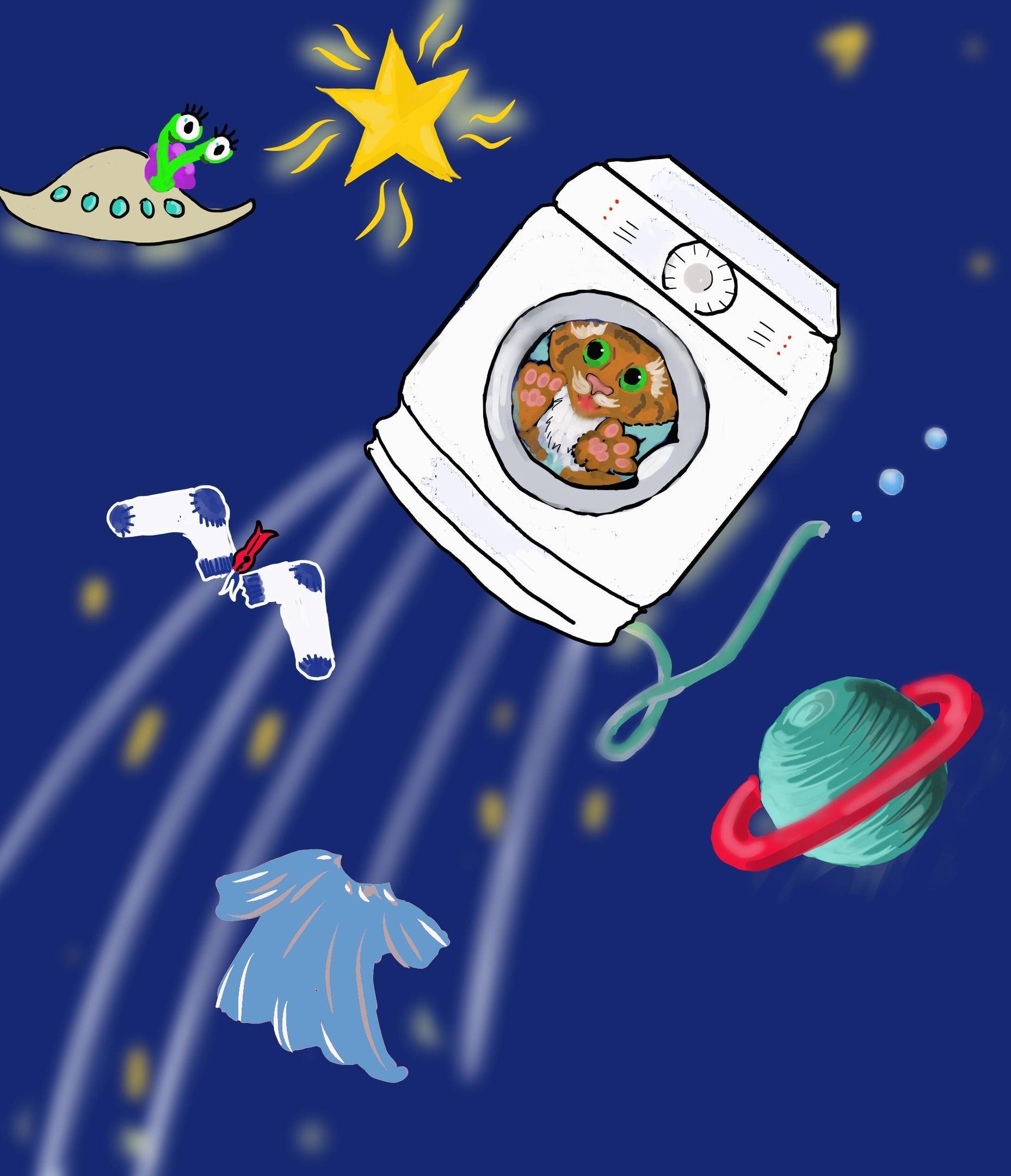 Тигруша летит в стиральной машине, переделанной в космолет: