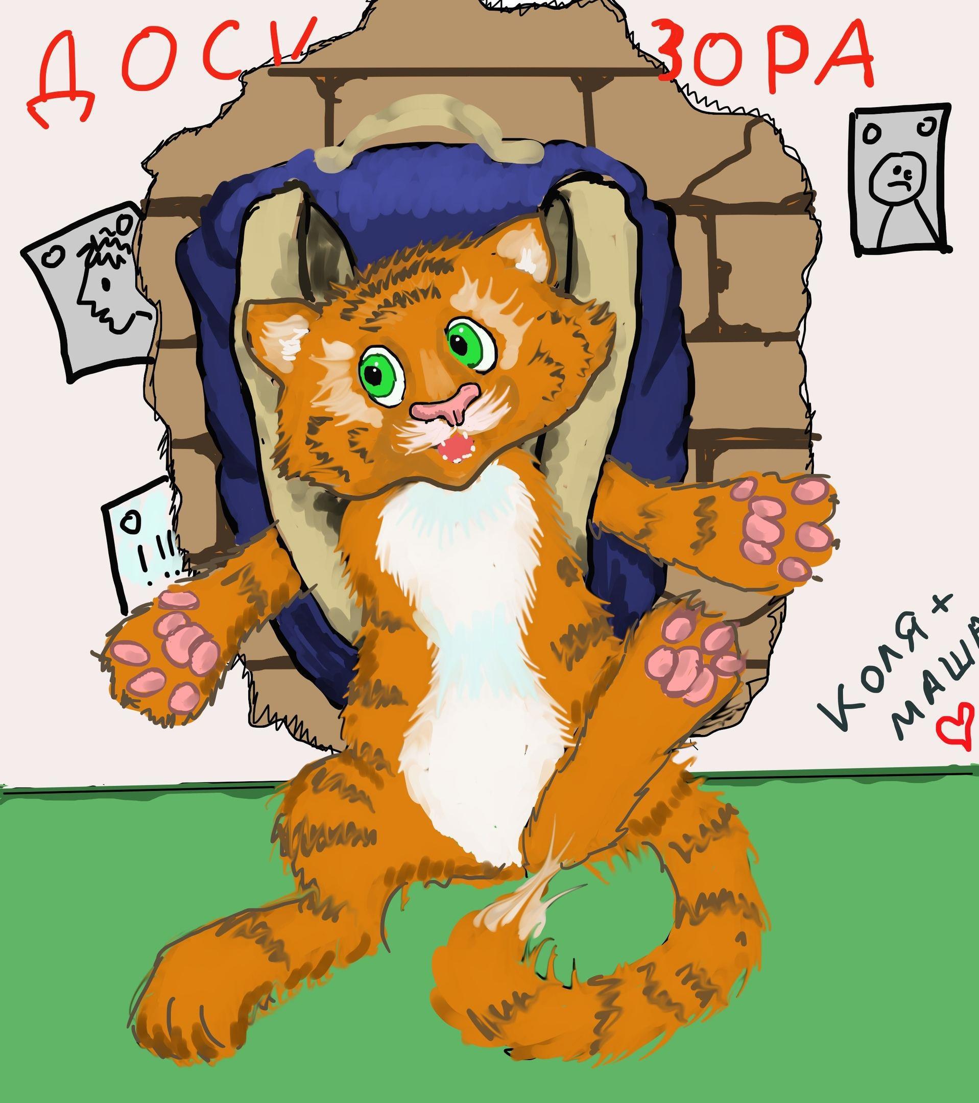 Тигрушу в школе повесили на доску позора, потому что его тяга к знаниям была так велика, что он пробил собой дверь класса и застрял в ней вместе со школьным рюкзаком: