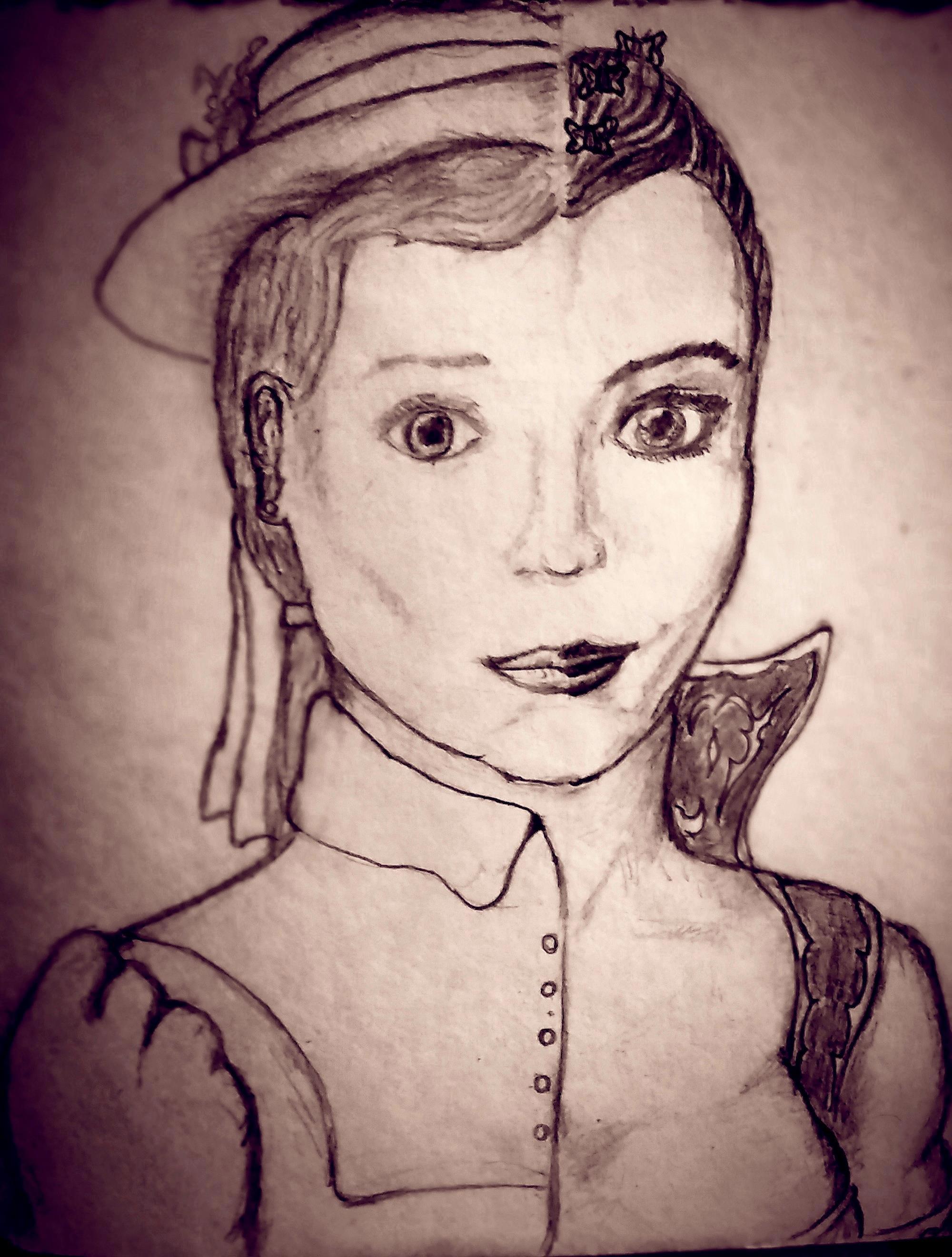 "...она явилась на аудиенцию к Предвечной, в изумрудно- зеленом платье, с глубоким декольте, ткрывающим плечи, на которое ниспадали волосы, едва прихваченные золочеными шпильками. Были видны только их небольшие основания, выполненные ввиде позолоченных ажурных бабочек, будто случайно севших на огненно— рыжую шевелюру, образовав собой узор. Грудь украшало колье, блеск которого подчеркивал цвет глаз, такой же как у платья. Сбоку вдоль подола шел разрез, отделанный тонким кружевом по краям. Он был выполнен так, будто и вовсе являлся имитацией, но вот беда, случайно разошелся, и теперь при неловком движении открывал точеную ножку, затянутую в тонкий кружевной чулок, на лодыжке украшенную золотым браслетиком. Сама фрейлина повела себя так, будто разрез и правда оказался случайностью."