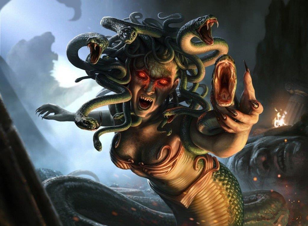 «Вместо волос у горгоны — шевелящиеся змеи, все тело покрыто блестящей чешуей. У горгоны медные руки с острыми стальными когтями, крылья со сверкающим золотым опереньем. От взгляда горгоны все живое превращается в камень» - так описывает горгону древнегреческий поэт Гесиод (ок. 700 до н.э), в поэме «Теогония» («Происхождение богов»). Действительно, облик ее был ужасен, и слово «gorgos» в переводе означает «страшный, грозный».