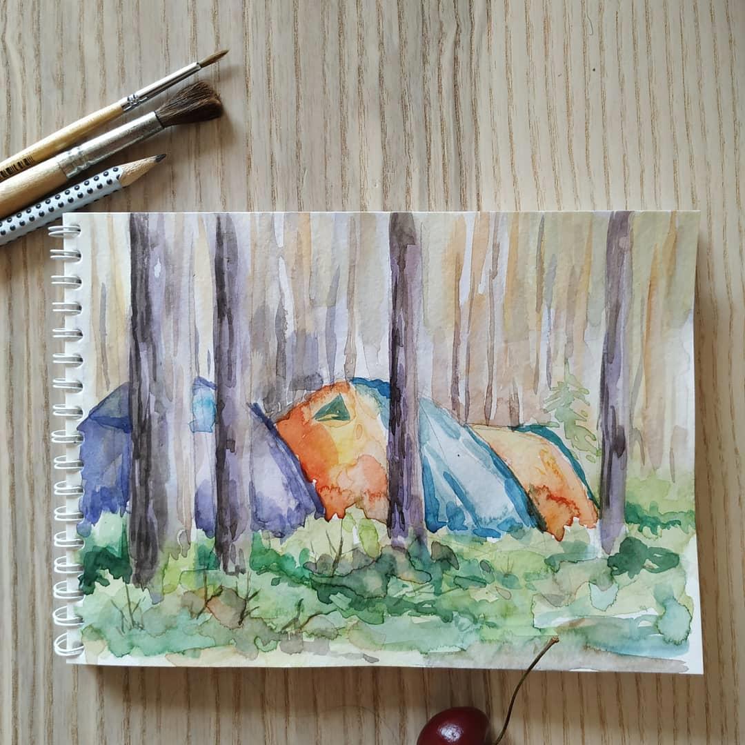 Зарисовка палаточного стойбища с летнего фестиваля Купало в Ленобласти. Надо было больше рисовать - так приятные воспоминания фиксируются лучше чем на фотках.