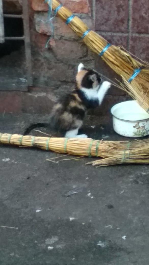 Банально, но это подвальный котёнок. Было мило наблюдать за её игрой во дворе, но стало жалко, так как мордашка была болезненная, и глазик заплывший. И вот в один солнечный день, она спала на своём любимом венике, и я подошла погладить, но не удержалась и забрала, и сразу к ветеринару. Так она и оказалась дома.