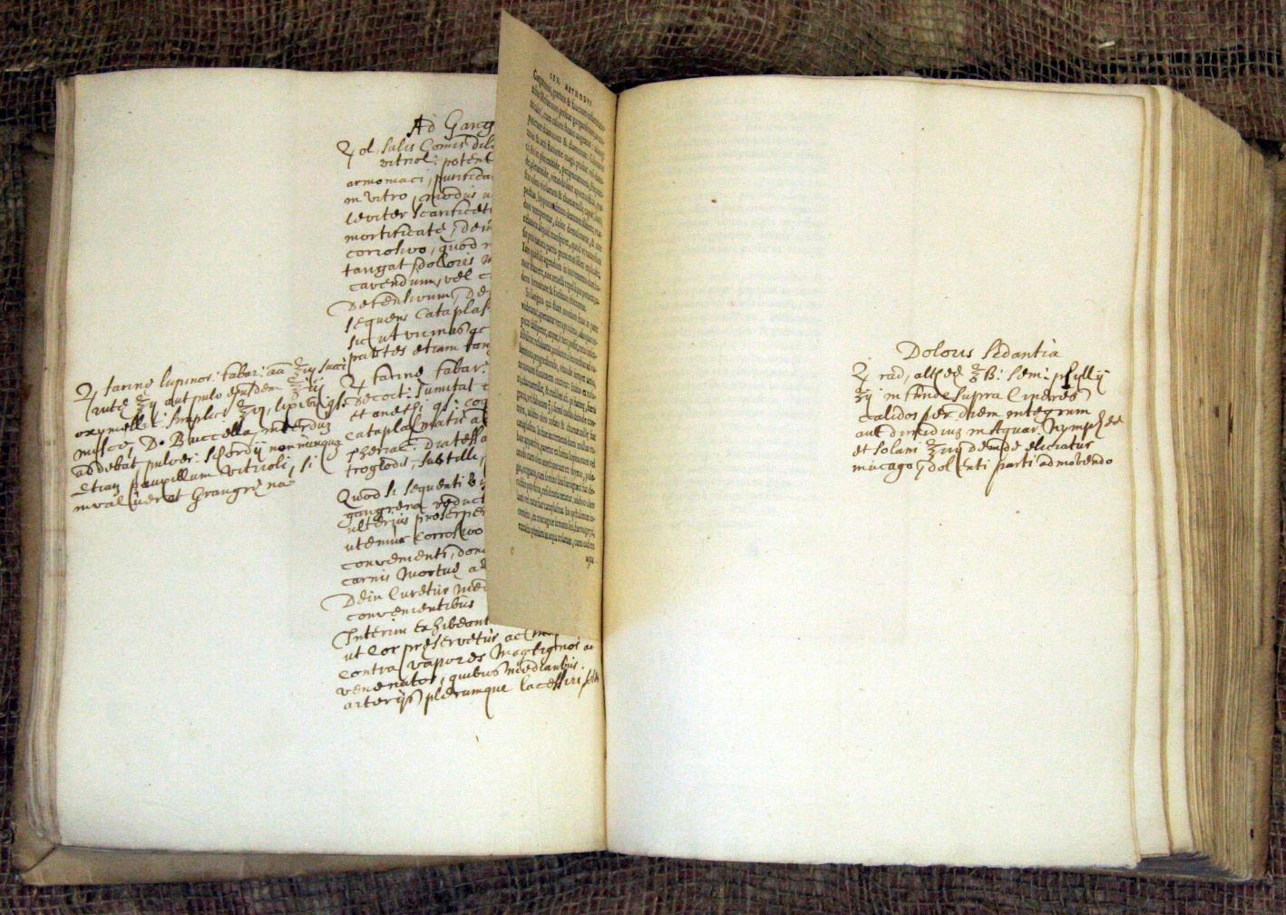 Сама книга была напечатана в малом формате — обычно такие книги можно положить в карман. Но... она бы туда не влезла и вот почему: один из ее владельцев распорядился проложить каждую страницу книги большим по формату листом и переплести уже в таком виде.