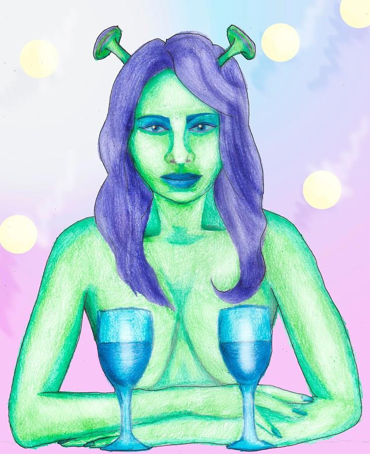 И ещё, самое главное. Дорогие художники, в преддверии кое-какого праздника, оденьте плиз или разденьте инопланетянку, чтоб она смогла гарцевать в новом наряде на нём.
